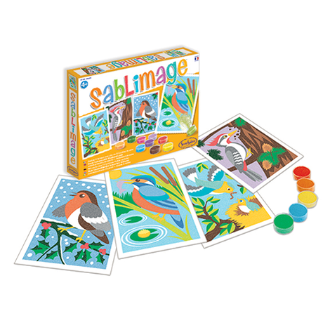Épatant ! Cette gamme d’activité artistique a été conçue pour que de très jeunes enfants puissent facilement réaliser de jolis tableaux naïfs sans se salir. Avec Sablimage, il suffit de décoller les surfaces préencollées et de les saupoudrer avec les différents sables proposés. Une activité ludique, manuelle et artistique idéale pour développer la créativité de votre enfant, l’habileté manuelle et le sens des couleurs ! Un loisir créatif révolutionnaire